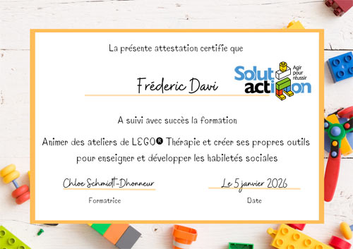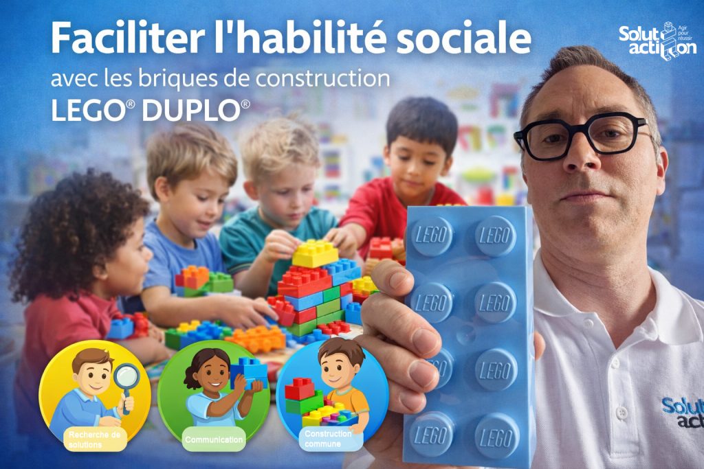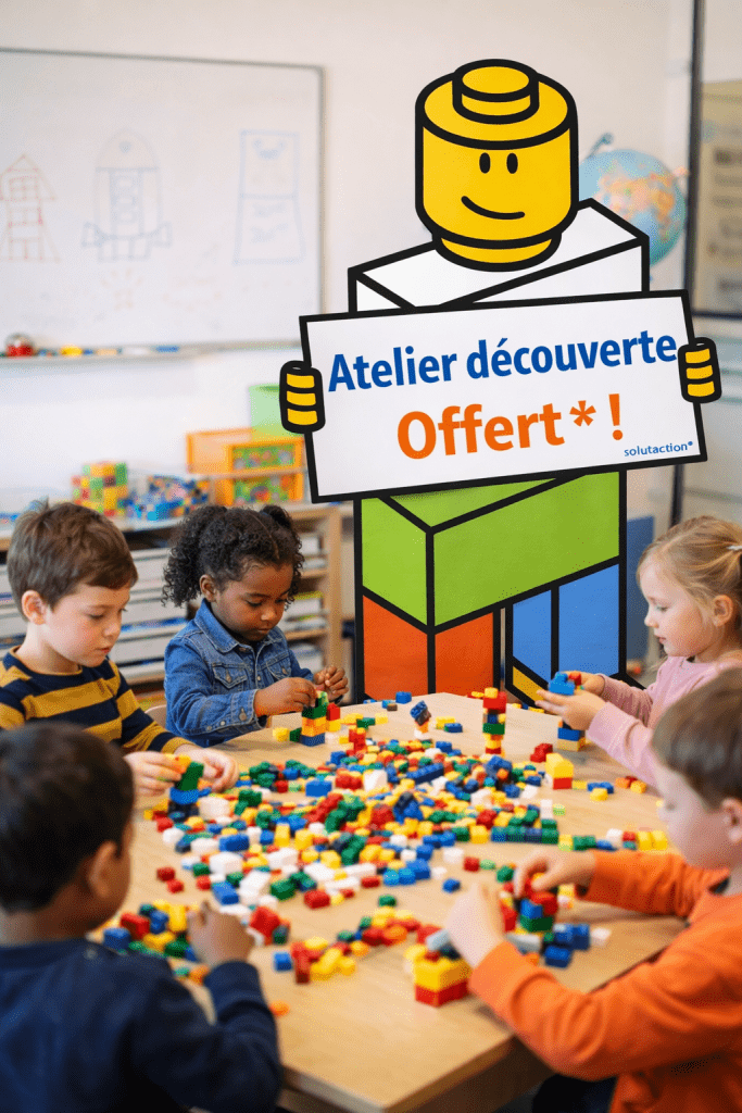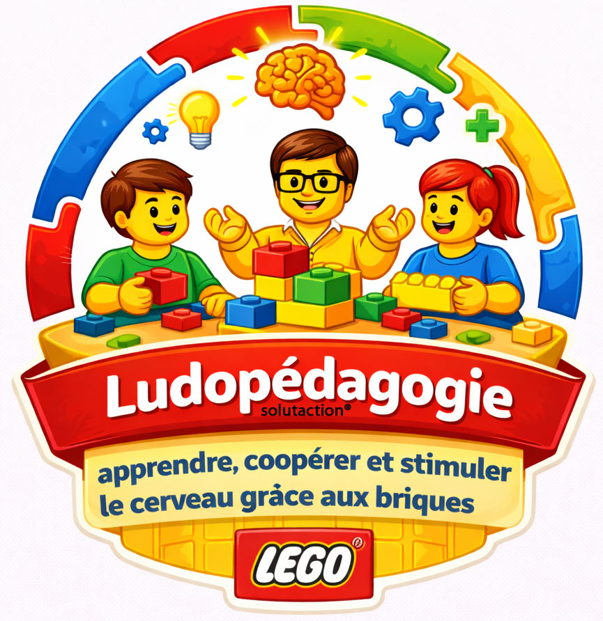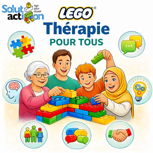 À partir de 3 ans et sans limite d’âge, Solutaction met des briques LEGO® DUPLO® entre les mains des participants pour favoriser l’apprentissage, la rééducation ou le maintien des compétences scolaires, des fonctions cognitives et des fonctions exécutives. Les briques deviennent un support de médiation puissant pour travailler l’attention, la concentration, la mémoire, la planification, l’organisation, la motricité fine, mais aussi l’expression des émotions et la confiance en soi.