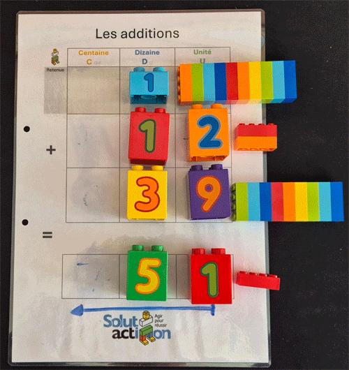• Concret : l’enfant manipule des objets pour représenter des quantités, des opérations ou des situations mathématiques. Les LEGO® et DUPLO® sont ici des supports puissants et motivants pour construire les notions de base (unités, dizaines, partage, symétrie, etc.).