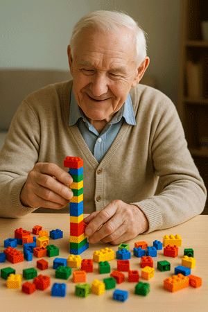 Grâce aux briques LEGO®, aux outils ludiques et à une posture bienveillante, je propose des temps de qualité pour vieillir en mouvement, intellectuellement et socialement.